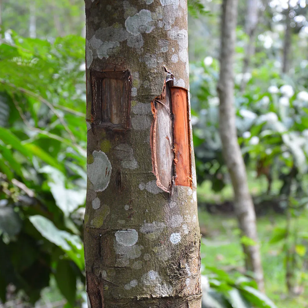 Cinnamon plants are cut about 12 cm from ground each year till the plant reaches 5 years of age. this process of pruning helps in branch formation and eventually the plant seems like a bush. After 5 years, the branches are cut as soon as they reach a thickness of 1 to 2 cm and should have turned brown. the leaves are then removed and the outer layer of the stem is scrapped out using a knife, which later is washed and sun then dried and is ready to use.